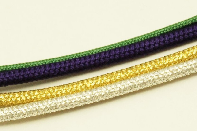 江戸打紐と比べて組み目が細かく、凹凸が少ないです。